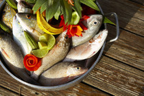Whole snapper with okra & shredded vegetable in a light & spicy fresh tomato sauce
